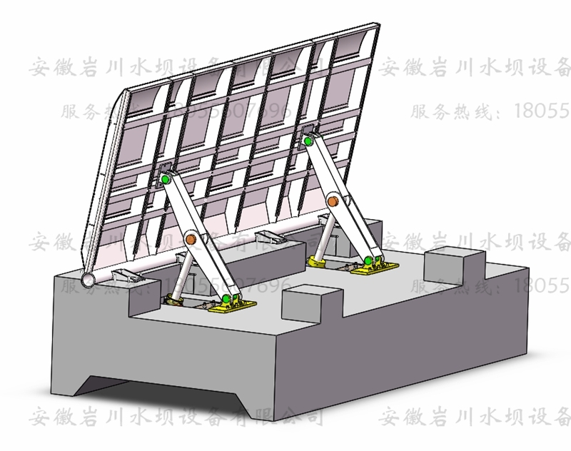 在水利水电建设上,随着我国城市用水、景观建设及环境整治和灌溉、发电的需要,水闸和橡胶坝得到广泛的运用。然而,橡胶坝运行管理较复杂、安全性差、橡胶易老化等弊端,质量事故发生率高。现在市场上出现大量钢结构闸门,但无论是提升式或卧倒式,单孔都很难适用较宽的河道。